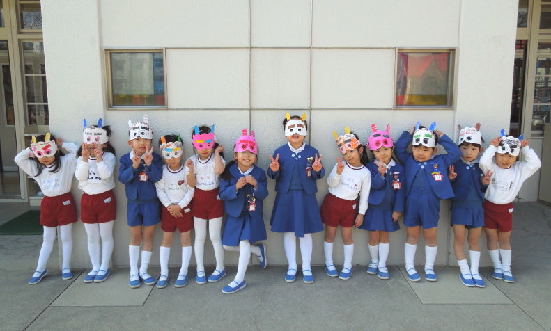 お面をつけたままで、英語の時間をすごしました(^^♪