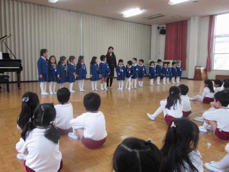 年少組から年長組のお兄さんお姉さんに、歌のプレゼント♪