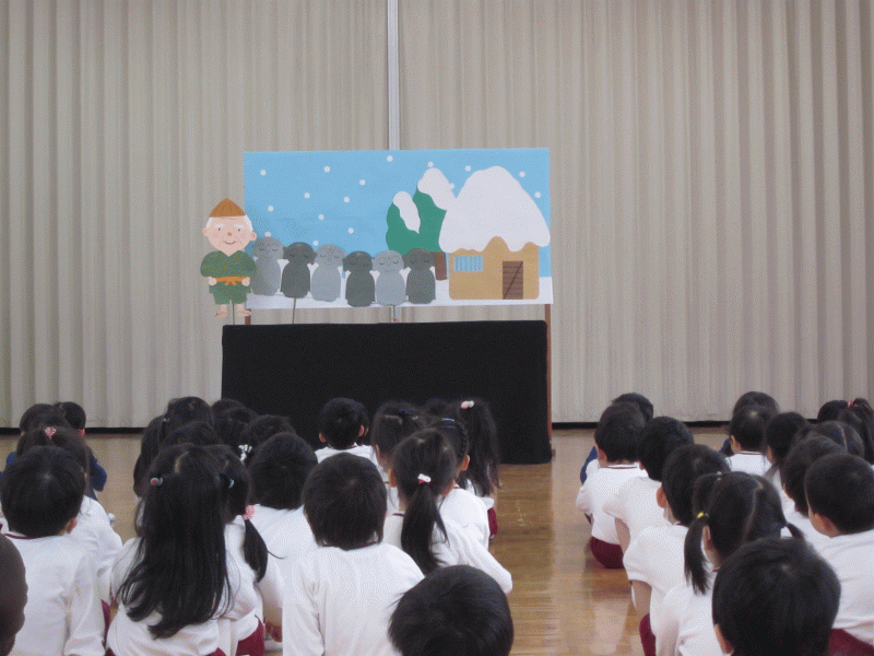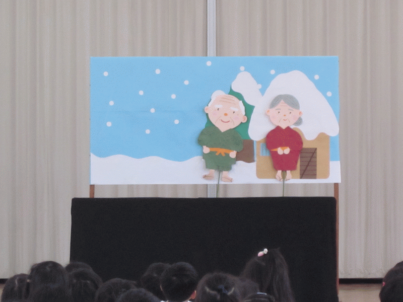 先生からのプレゼントは、昔話『かさじぞう』のペープサートでした。