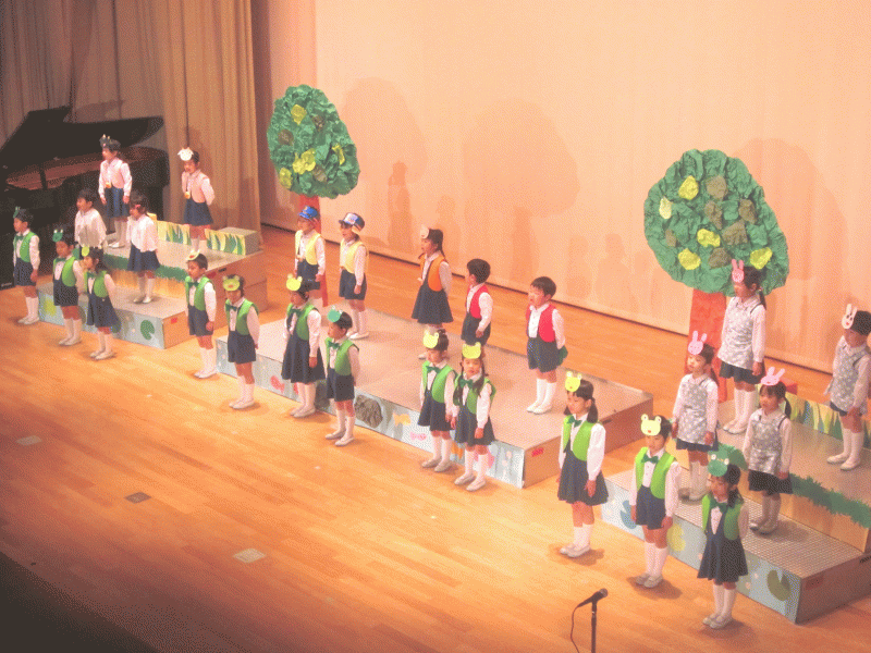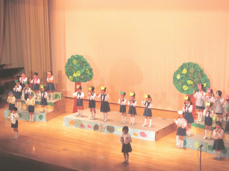 次は年中組さんから『あおいそらにえおかこう』という歌のプレゼントです。