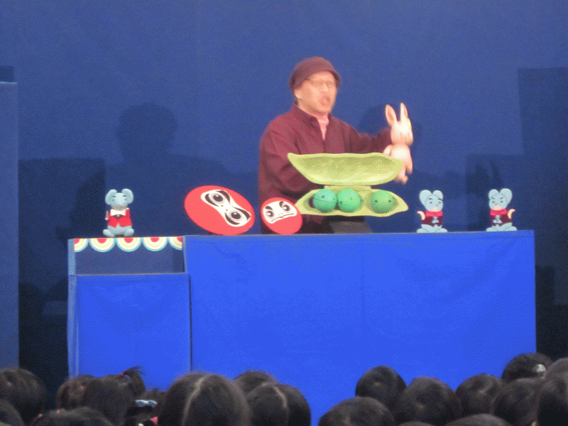 『ねずみの音楽会』では、ねずみの指揮者にうさぎのパペット、