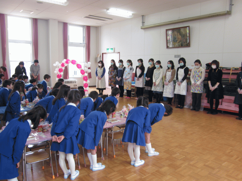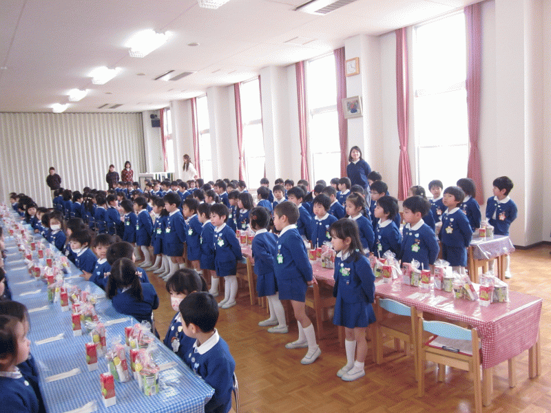 遊戯室を素敵に飾り付けて下さったり、おやつの用意やお弁当の配膳など、今日のお別れ会を、楽しく過ごせるように準備をしてくださったお母様達にお礼を言いました。