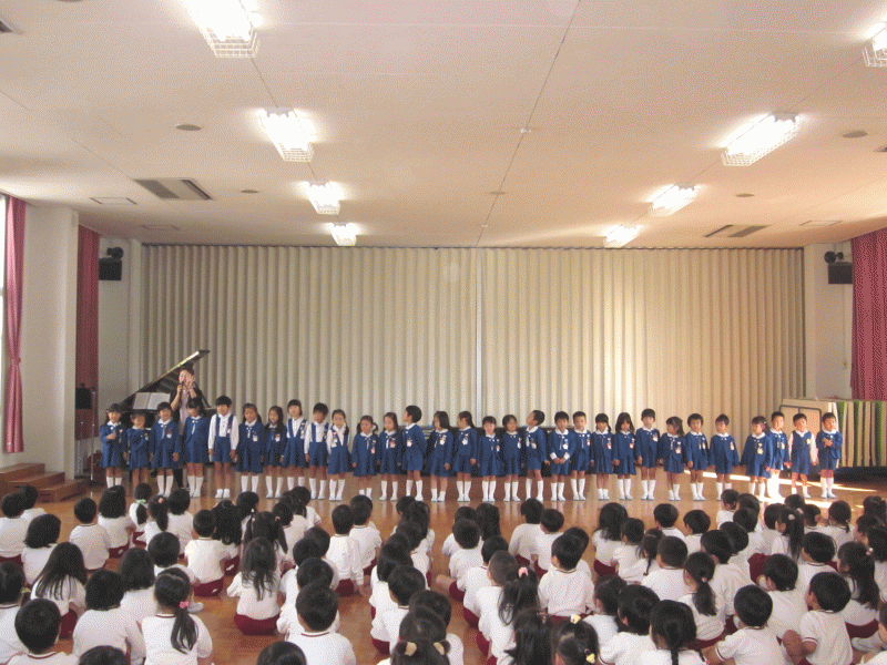 保護者の温かい歌声に包まれて、子ども達の入堂です。