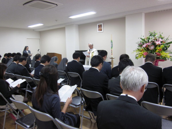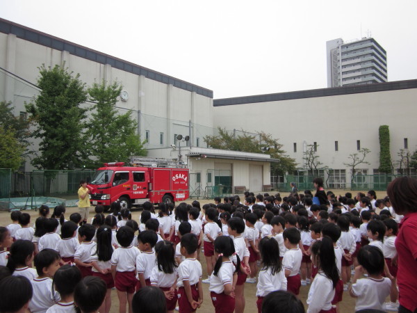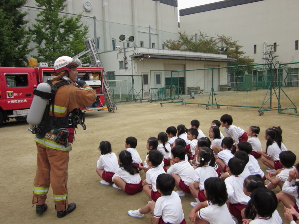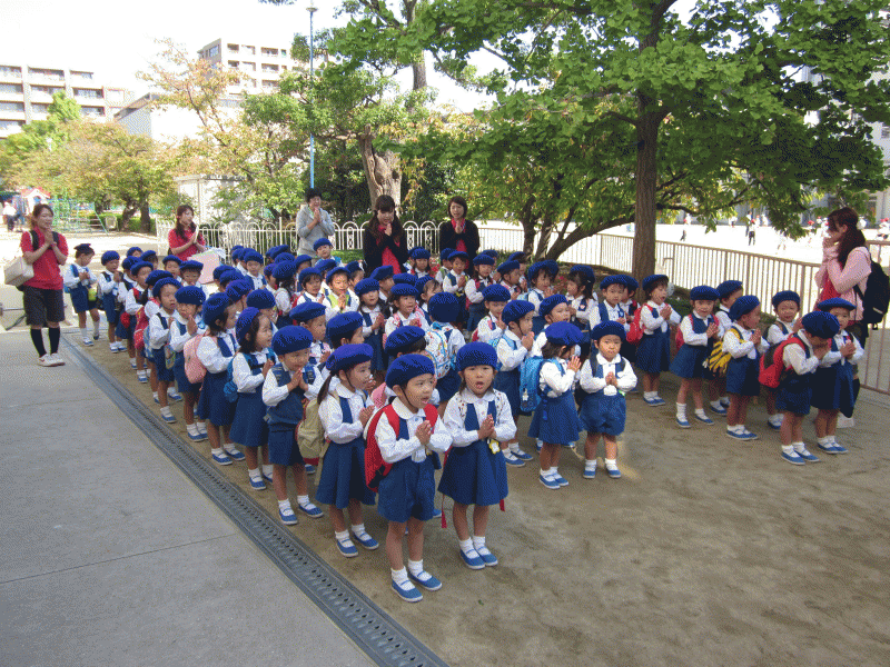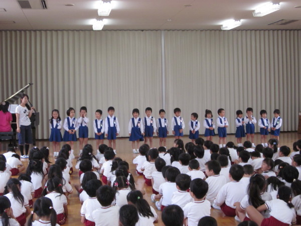 園庭に集まってお祈りをし、園長先生からお話を頂きました。