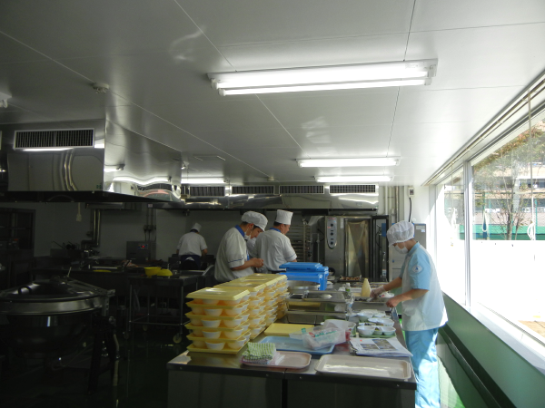 食事は、新校舎の給食室で調理されたものです。