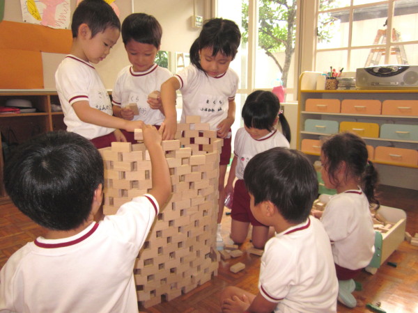 積み木では“マンション作り”