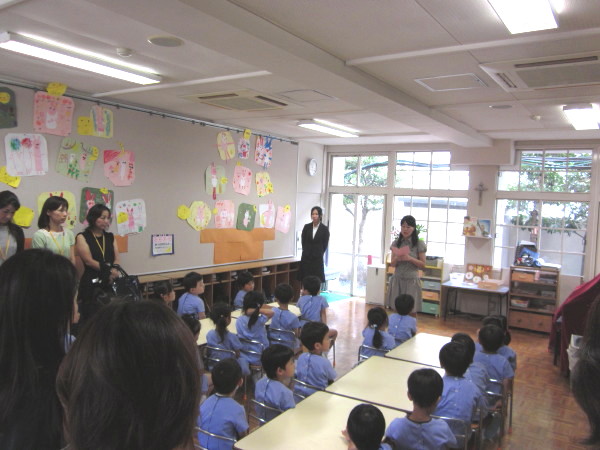 園長先生より、城星学園幼稚園の建学の精神や教育目標、目指す子ども像について、また、今までに出会った子どもの様子などについてのお話がありました。
