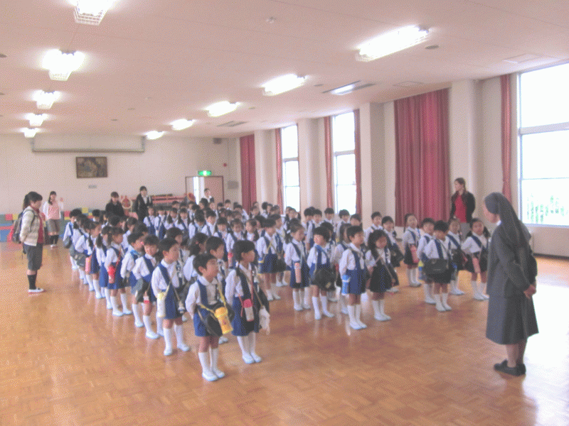 道中の安全をお祈りした後は、園長先生から、