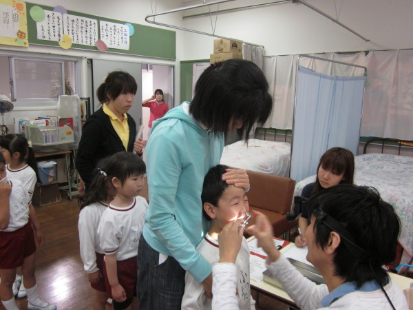ちょっと怖くて、泣きべそをかいていた年少さんもいましたが、全員、喉・鼻・耳を診てもらうことができました。