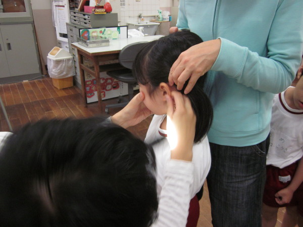 鼻に器具を入れられるのに、ちょっと抵抗する子もいましたが、耳鼻科の先生が「大丈夫だよ〜。」と、優しく声を掛けてくれている間に終わっていました(^O^)