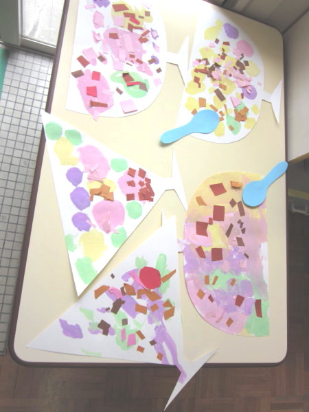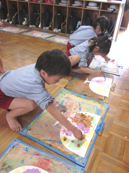 折り紙をちぎって、ペタペタ・・・