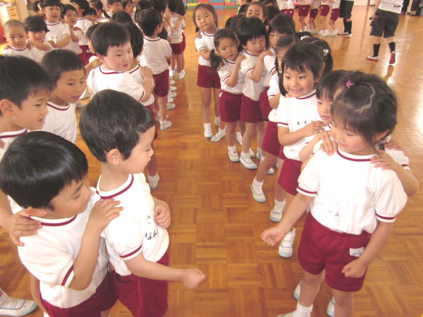 お友達と手をつないで、ジャンプをしたり、
