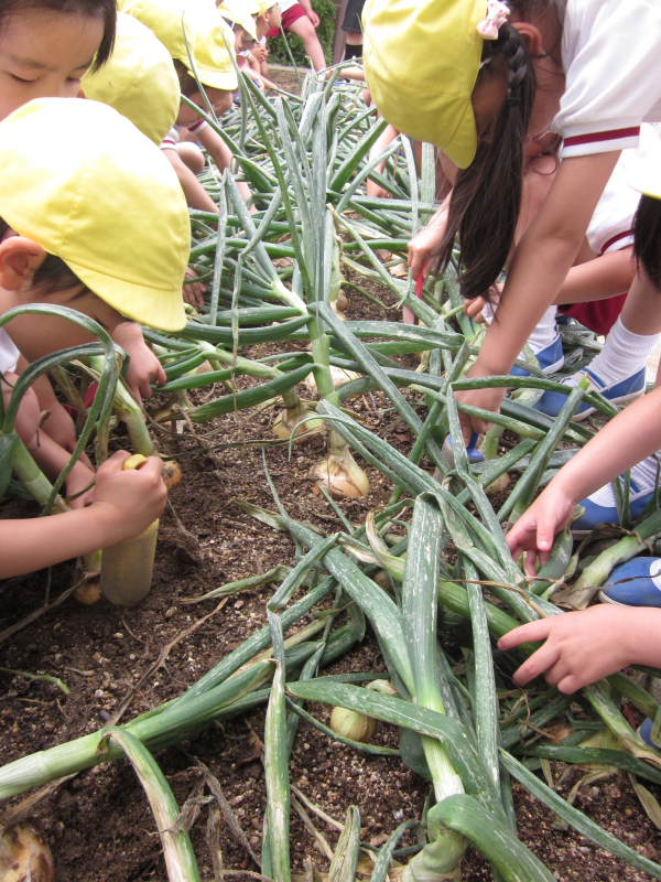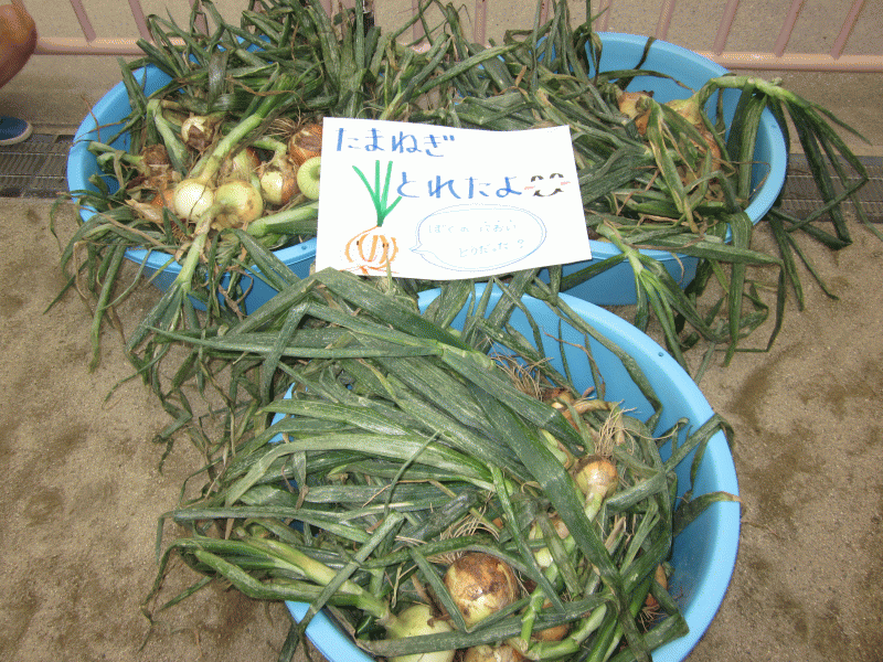 こ〜んなにたくさんの玉ねぎを幼稚園の畑から