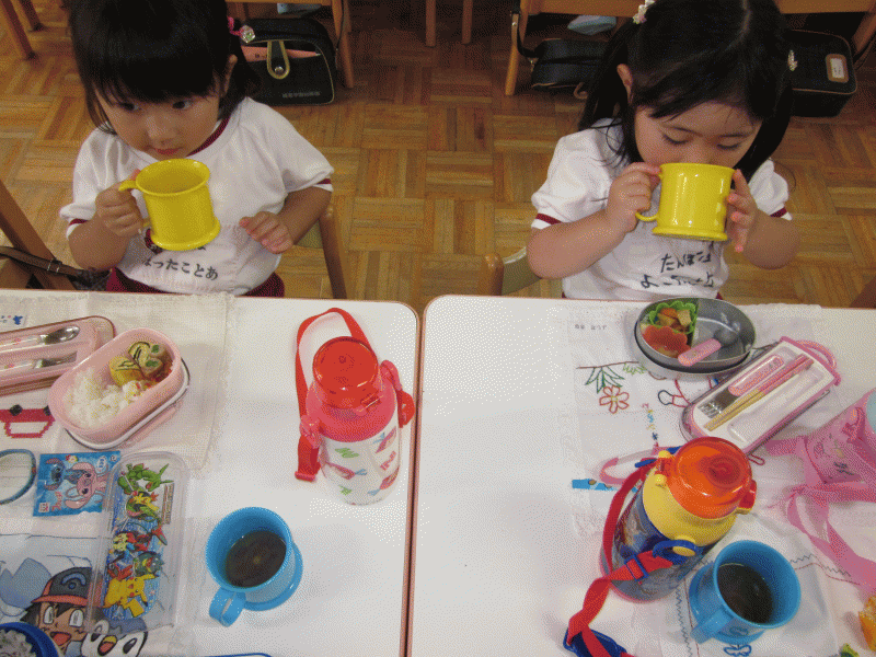 ・手でお皿を作り、ポタポタ落ちないようにしよう。