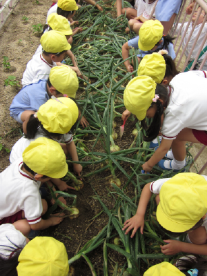 去年の冬、園庭の畑にみんなで植えた“玉ねぎ”!!