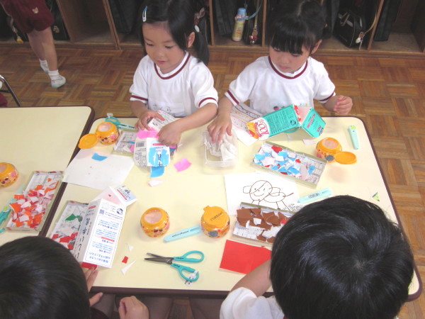 年中組では、廃材を使った製作活動に取り組みました。