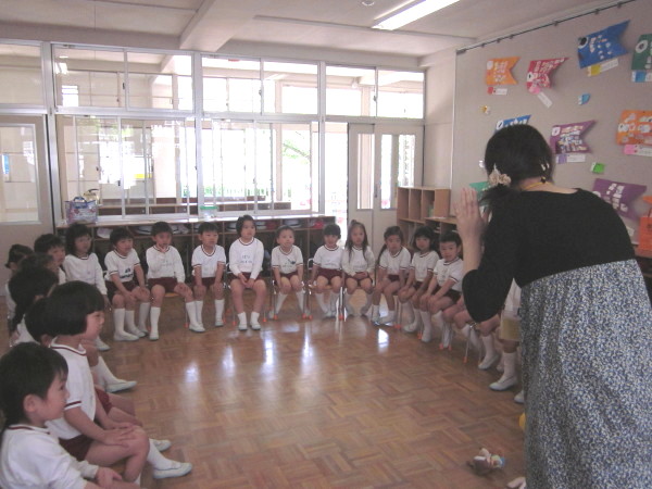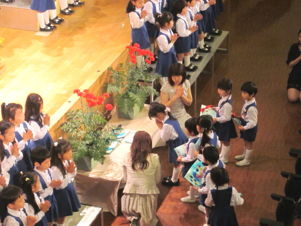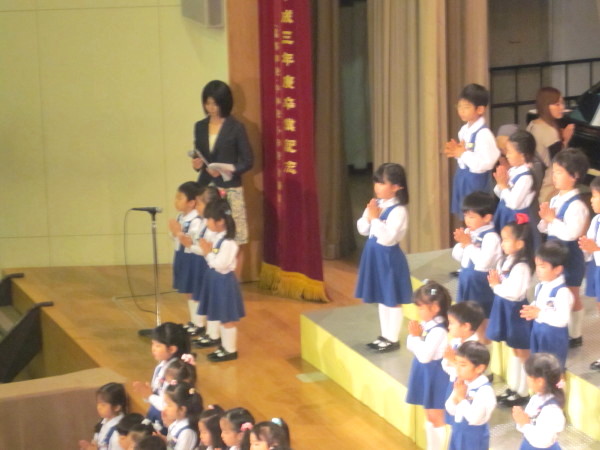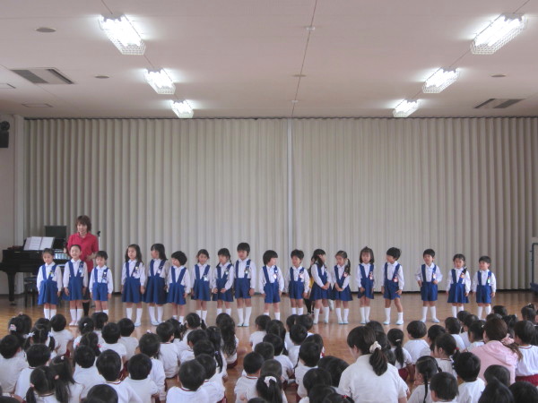 年少組、年中組の子どもたちの声が、講堂に響いていました。