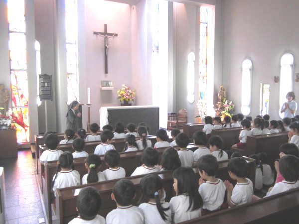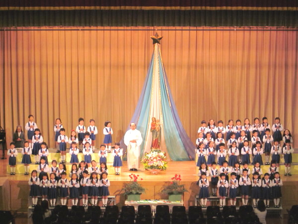 たくさんの保護者の皆様にご参加いただき、講堂にて、聖母祭が行われました。