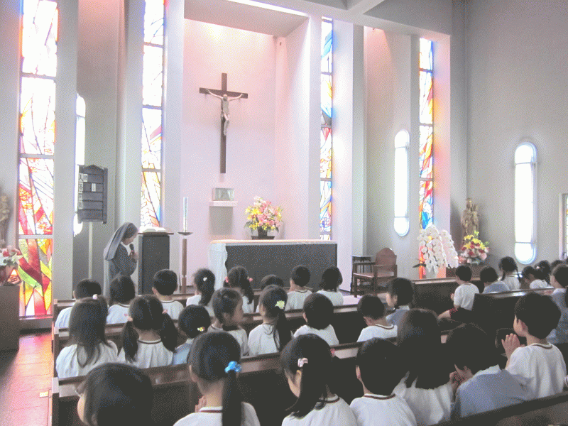 聖母祭は、城星学園に集う子どもたち、保護者の皆様、そして、教職員が心を一つに合わせて、これまでいただいた数々の恵みに感謝すると共に、世界の平和とご保護を願い、聖母マリア様に祈りと賛美を捧げる日です。