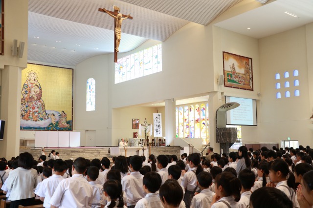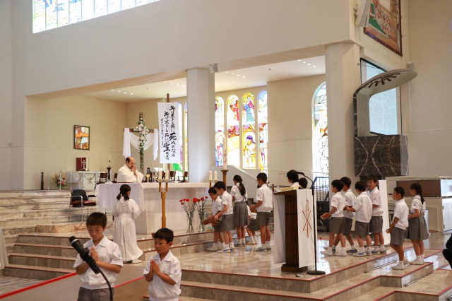 全 1952 件(全98ページ) 過去のページもご覧いただけます ⇒ 前へ 11 | 12 | 13 | 14 | 15 | 次へ 2019/5/23 マリア様のみ心に思いを寄せて。 玉造大聖堂で,全校児童がそろって聖母祭のミサにあずかりました。教室から学校を出て,大聖堂へ向かうまでも祈る気持ちで静かに移動しました。 玉造大聖堂で,全校児童がそろって聖母祭のミサにあずかりました。教室から学校を出て,大聖堂へ向かうまでも祈る気持ちで静かに移動しました。 9日間積んだ徳の花をマリア様にお捧しました。1年生にとっては初めての大きなミサでした。皆さんのお祈りは,神様に届いたでしょうか。マリア様のように,人を大事にするということをこれからも大切に続けていきたいですね。 9日間積んだ徳の花をマリア様にお捧しました。1年生にとっては初めての大きなミサでした。皆さんのお祈りは,神様に届いたでしょうか。マリア様のように,人を大事にするということをこれからも大切に続けていきたいですね。 マリア様のみ心に思いを寄せて。 2019/5/23 玉造大聖堂で,全校児童がそろって聖母祭のミサにあずかりました。教室から学校を出て,大聖堂へ向かうまでも祈る気持ちで静かに移動しました。 玉造大聖堂で,全校児童がそろって聖母祭のミサにあずかりました。教室から学校を出て,大聖堂へ向かうまでも祈る気持ちで静かに移動しました。 9日間積んだ徳の花をマリア様にお捧しました。1年生にとっては初めての大きなミサでした。皆さんのお祈りは,神様に届いたでしょうか。マリア様のように,人を大事にするということをこれからも大切に続けていきたいですね。 9日間積んだ徳の花をマリア様にお捧しました。1年生にとっては初めての大きなミサでした。皆さんのお祈りは,神様に届いたでしょうか。マリア様のように,人を大事にするということをこれからも大切に続けていきたいですね。 2019/5/20 手のひらいっぱいの自然,見つけた! ここにも,あそこにも!1年生と2年生が夢中になって地面の草花を探し歩いています。 ここにも,あそこにも!1年生と2年生が夢中になって地面の草花を探し歩いています。 大阪城公園まで,1年生と2年生が連れ立ってやってきました。お天気が心配された校外学習でしたが,雨に見舞われることなく過ごすことができました。 大阪城公園まで,1年生と2年生が連れ立ってやってきました。お天気が心配された校外学習でしたが,雨に見舞われることなく過ごすことができました。 両手いっぱいの自然!お土産もたくさん見つけられたかな? 両手いっぱいの自然!お土産もたくさん見つけられたかな? 手のひらいっぱいの自然,見つけた! 2019/5/20 ここにも,あそこにも!1年生と2年生が夢中になって地面の草花を探し歩いています。 ここにも,あそこにも!1年生と2年生が夢中になって地面の草花を探し歩いています。 大阪城公園まで,1年生と2年生が連れ立ってやってきました。お天気が心配された校外学習でしたが,雨に見舞われることなく過ごすことができました。 大阪城公園まで,1年生と2年生が連れ立ってやってきました。お天気が心配された校外学習でしたが,雨に見舞われることなく過ごすことができました。 両手いっぱいの自然!お土産もたくさん見つけられたかな? 両手いっぱいの自然!お土産もたくさん見つけられたかな? 2019/5/17 伊丹空港到着 6年生、大阪に帰ってまいりました!無事に旅を終えられるようお祈りいただき、ありがとうございました。 6年生、大阪に帰ってまいりました!無事に旅を終えられるようお祈りいただき、ありがとうございました。 伊丹空港到着 2019/5/17 6年生、大阪に帰ってまいりました!無事に旅を終えられるようお祈りいただき、ありがとうございました。 6年生、大阪に帰ってまいりました!無事に旅を終えられるようお祈りいただき、ありがとうございました。 2019/5/17 長崎空港到着 お世話になったバス運転手さん、ガイドさんとお別れして、ただいま空港に到着。帰るまでが、旅行です。 お世話になったバス運転手さん、ガイドさんとお別れして、ただいま空港に到着。帰るまでが、旅行です。 長崎空港到着 2019/5/17 お世話になったバス運転手さん、ガイドさんとお別れして、ただいま空港に到着。帰るまでが、旅行です。 お世話になったバス運転手さん、ガイドさんとお別れして、ただいま空港に到着。帰るまでが、旅行です。 2019/5/17 最終見学地 6年生は最終見学地、西坂26聖人記念館に到着しました。 ここは迫害時代の殉教者の記念碑や、日本カトリック史の資料を見ることができます。 ここは迫害時代の殉教者の記念碑や、日本カトリック史の資料を見ることができます。 最終見学地 2019/5/17 6年生は最終見学地、西坂26聖人記念館に到着しました。 ここは迫害時代の殉教者の記念碑や、日本カトリック史の資料を見ることができます。 ここは迫害時代の殉教者の記念碑や、日本カトリック史の資料を見ることができます。 2019/5/17 浦上天主堂 浦上天主堂に到着しました。神父様のお話を聞かせて頂き