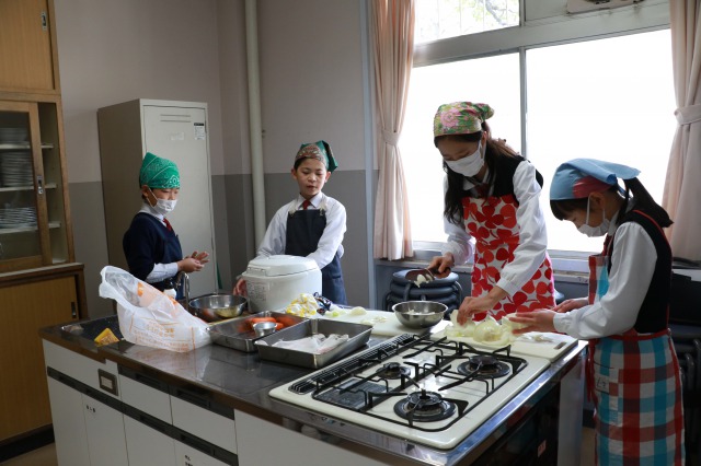 先日6年生が、小学校生活最後の調理実習を行いました。