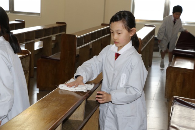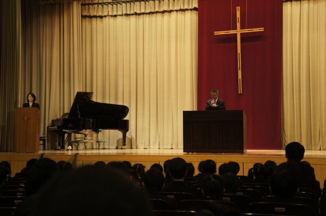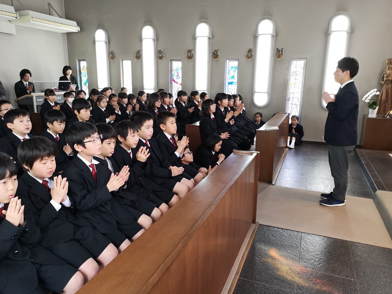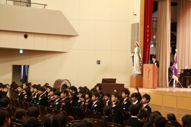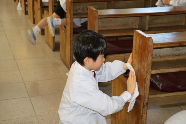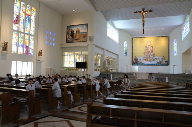 新学期の1日目をお御堂でのお祈りで始めた学年もあります。