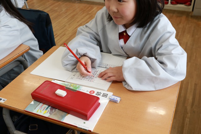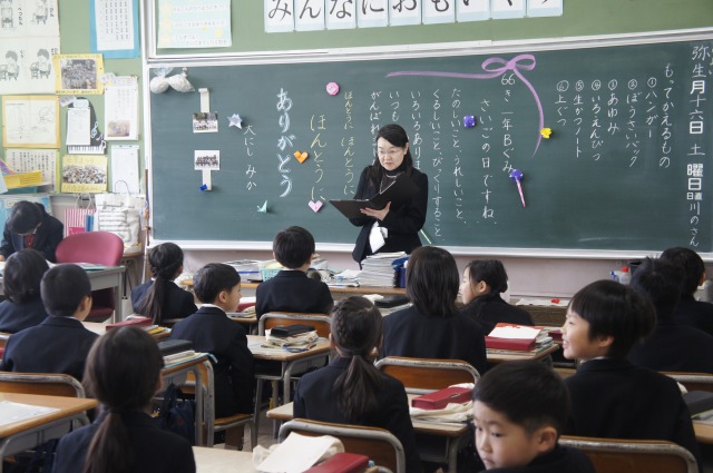 それぞれが次の学年へと進級しました。中央の空いた席にはもうすぐ入学してくる一年生が座ります。