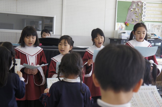 講堂を後にするころには,みんなきりりとした立派な“小学生”の顔になっていました。