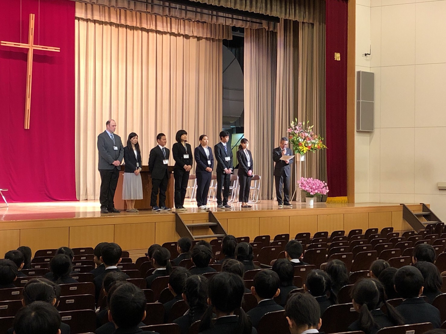 着任式では新しい先生方が紹介されました。これから共に一生懸命学び、共にめいっぱい遊びましょう!