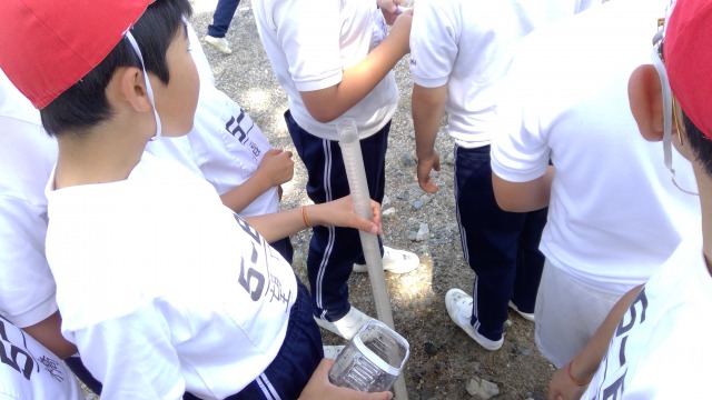 学校の近くを流れる第二寝屋川は透視度管の調査で33cmしか見えませんでした。
