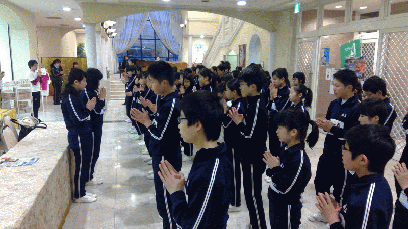 全 1952 件(全98ページ) 過去のページもご覧いただけます ⇒ 前へ 31 | 32 | 33 | 34 | 35 | 次へ 2018/2/26 4年生、がんばりました! 先週、高学年が学習旅行に出かけている間、学校に残る最高学年としてがんばった4年生! 先週、高学年が学習旅行に出かけている間、学校に残る最高学年としてがんばった4年生! いつもは6年生がしているおはよう当番も、ぼくたち、私たちががんばりました。 いつもは6年生がしているおはよう当番も、ぼくたち、私たちががんばりました。 あと少しで高学年。よい準備期間になりましたね。 あと少しで高学年。よい準備期間になりましたね。 4年生、がんばりました! 2018/2/26 先週、高学年が学習旅行に出かけている間、学校に残る最高学年としてがんばった4年生! 先週、高学年が学習旅行に出かけている間、学校に残る最高学年としてがんばった4年生! いつもは6年生がしているおはよう当番も、ぼくたち、私たちががんばりました。 いつもは6年生がしているおはよう当番も、ぼくたち、私たちががんばりました。 あと少しで高学年。よい準備期間になりましたね。 あと少しで高学年。よい準備期間になりましたね。 2018/2/23 被爆のマリア小聖堂 6年生は旅の最後に被爆のマリア小聖堂で「祈りの集い」を行いました。私たちの祈りが天に届きますように。 6年生は旅の最後に被爆のマリア小聖堂で「祈りの集い」を行いました。私たちの祈りが天に届きますように。 被爆のマリア小聖堂 2018/2/23 6年生は旅の最後に被爆のマリア小聖堂で「祈りの集い」を行いました。私たちの祈りが天に届きますように。 6年生は旅の最後に被爆のマリア小聖堂で「祈りの集い」を行いました。私たちの祈りが天に届きますように。 2018/2/23 浦上天主堂 6年生は最後の見学地、浦上天主堂にやってきました。被爆のマリア小聖堂で平和の祈りを唱えます。 6年生は最後の見学地、浦上天主堂にやってきました。被爆のマリア小聖堂で平和の祈りを唱えます。 浦上天主堂 2018/2/23 6年生は最後の見学地、浦上天主堂にやってきました。被爆のマリア小聖堂で平和の祈りを唱えます。 6年生は最後の見学地、浦上天主堂にやってきました。被爆のマリア小聖堂で平和の祈りを唱えます。 2018/2/23 如己堂 6年生は永井隆博士が晩年を過ごした如己堂を見学しました。原爆病となっても亡くなるまで家族を思い、平和を願った永井博士。その生涯から平和とは何かを学びます。 6年生は永井隆博士が晩年を過ごした如己堂を見学しました。原爆病となっても亡くなるまで家族を思い、平和を願った永井博士。その生涯から平和とは何かを学びます。 如己堂 2018/2/23 6年生は永井隆博士が晩年を過ごした如己堂を見学しました。原爆病となっても亡くなるまで家族を思い、平和を願った永井博士。その生涯から平和とは何かを学びます。 6年生は永井隆博士が晩年を過ごした如己堂を見学しました。原爆病となっても亡くなるまで家族を思い、平和を願った永井博士。その生涯から平和とは何かを学びます。 2018/2/23 平和と祈りの旅、最終日 今日の朝会はホテルのチャペルで行いました。一日、良い学びと祈りの一日となりますように。 今日の朝会はホテルのチャペルで行いました。一日、良い学びと祈りの一日となりますように。 平和と祈りの旅、最終日 2018/2/23 今日の朝会はホテルのチャペルで行いました。一日、良い学びと祈りの一日となりますように。 今日の朝会はホテルのチャペルで行いました。一日、良い学びと祈りの一日となりますように。 2018/2/22 被爆体験講話 6年生は被爆体験講話をしていただきました。戦争の悲劇、核兵器もたらした悲しみを、語り部さんによって子どもたちに語っていただきました。 6年生は被爆体験講話をしていただきました。戦争の悲劇、核兵器もたらした悲しみを、語り部さんによって子どもたちに語っていただきました。 被爆体験講話 2018/2/22 6年生は被爆体験講話をしていただきました。戦争の悲劇、核兵器もたらした悲しみを、語り部さんによって子どもたちに語っていただきました。 6年生は被爆体験講話をしていただきました。戦争の悲劇、核兵器もたらした悲しみを、語り部さんによって子どもたちに語っていただきました。 2018/2/22 平和学習 6年生は小学校で学んだ平和学習のまとめを長崎で行っています。 6年生は小学校で学んだ平和学習のまとめを長崎で行っています。 平和記念公園や、爆心地、原爆資料館でみんなで作った千羽鶴をお捧げしました。 平和記念公園や、爆心地、原爆資料館でみんなで作った千羽鶴をお捧げしました。 平和学習 2018/2/22 6年生は小学校で学んだ平和学習のまとめを長崎で行っています。 6年生は小学校で学んだ平和学習のまとめを長崎で行っています。 平和記念公園や、爆心地、原爆資料館でみんなで作った千羽鶴をお捧げしました。 平和記念公園や、爆心地、原爆資料館でみんなで作った千羽鶴をお捧げしました。 2018/2/22 歴史学習旅行 5年生は今日から歴史学