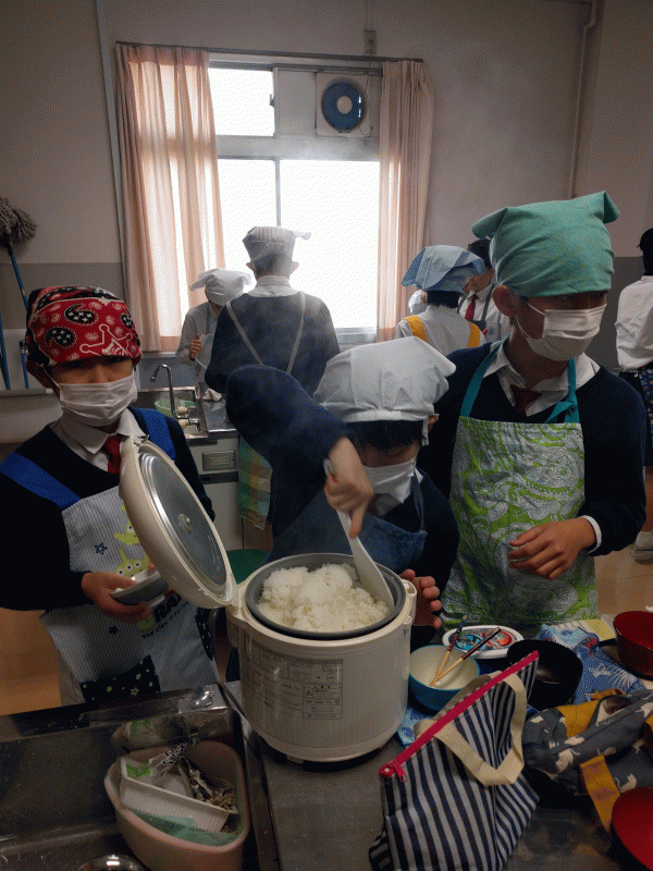 家庭科の調理実習の様子です。男子は金曜日、女子は本日行いました。ごはんと、お味噌汁作りに挑戦しました。