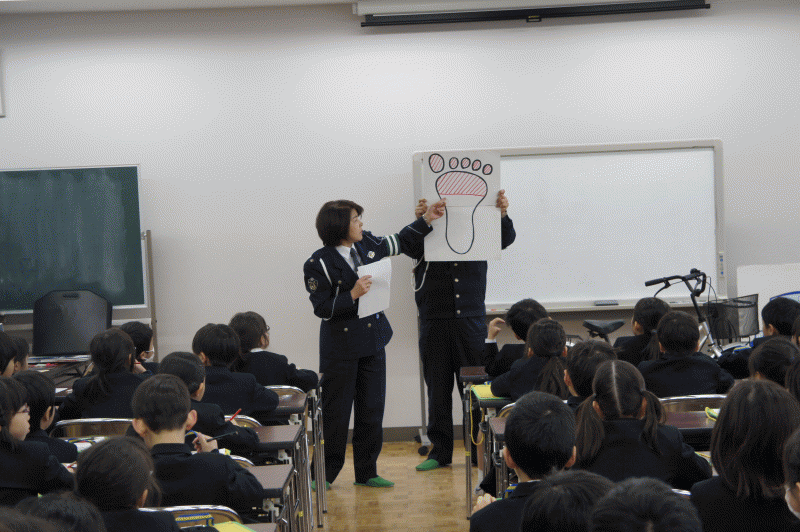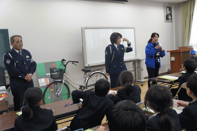今日は東警察署の方が、3年生対象に「自転車安全教室」を行いました。