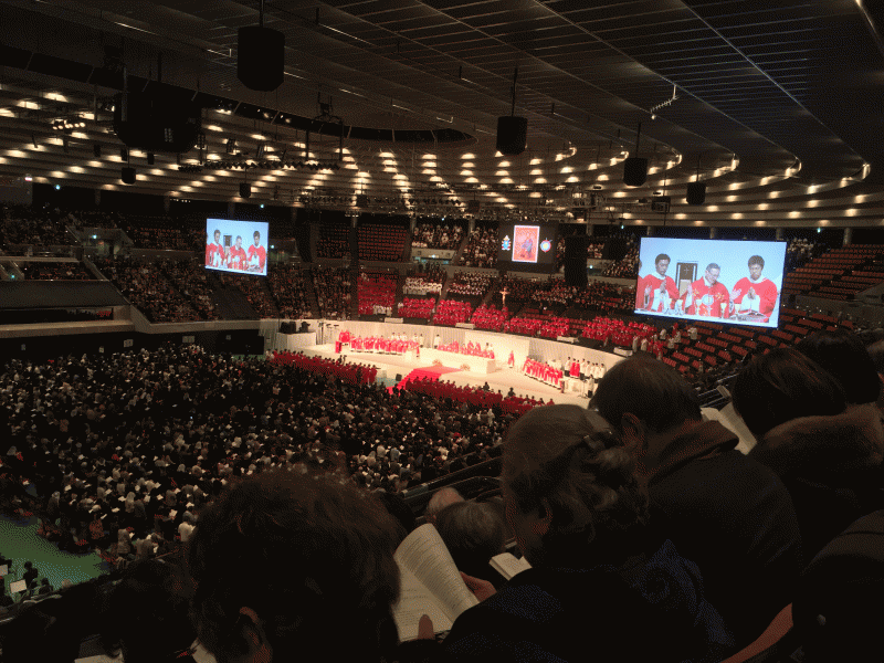 大阪城ホールでユスト高山右近を福者に認定する列福ミサが執り行われました。