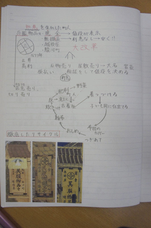 内容は「知恵を生かした町人」江戸時代の町人にスポットを当てました。
