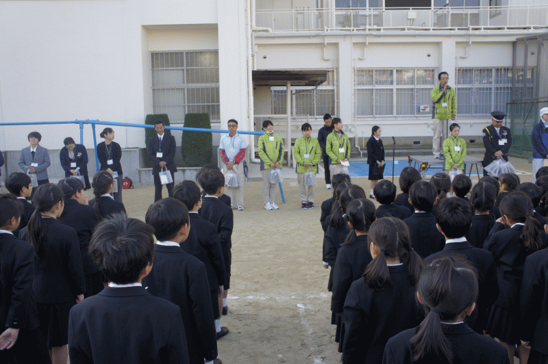 避難訓練の後、ゼッケンを一人ひとりに配りました。気持ちが高まってきます!