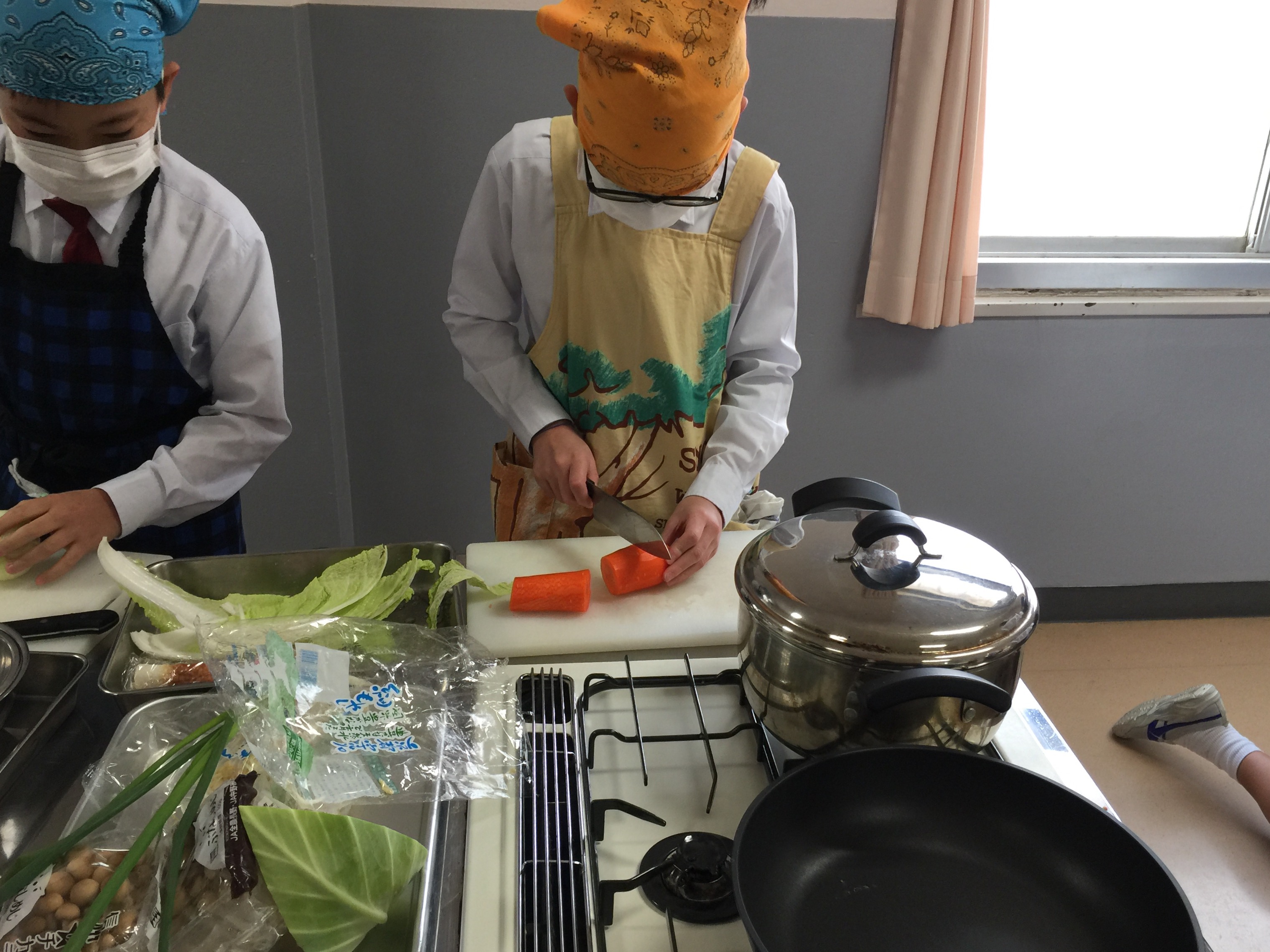 6年生の2学期の調理実習は皿うどん。2月に訪れる長崎県の名物です。