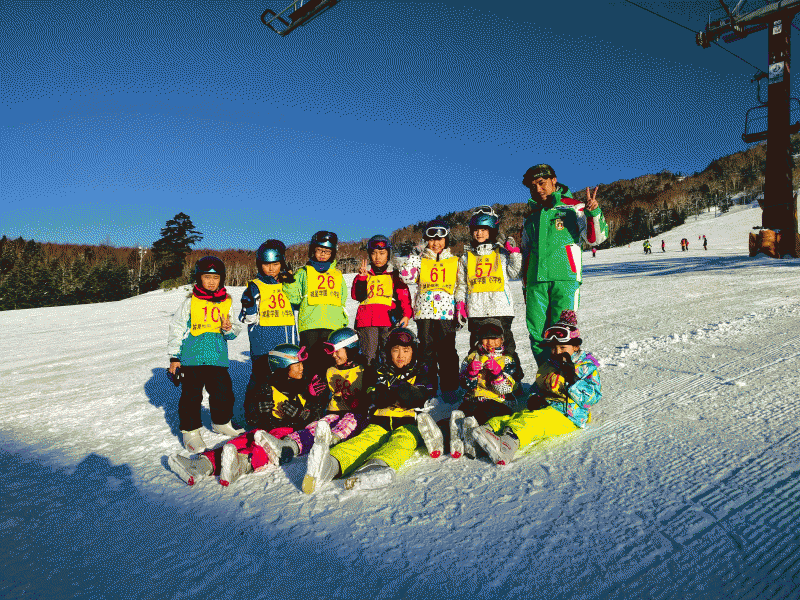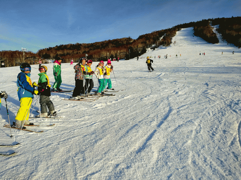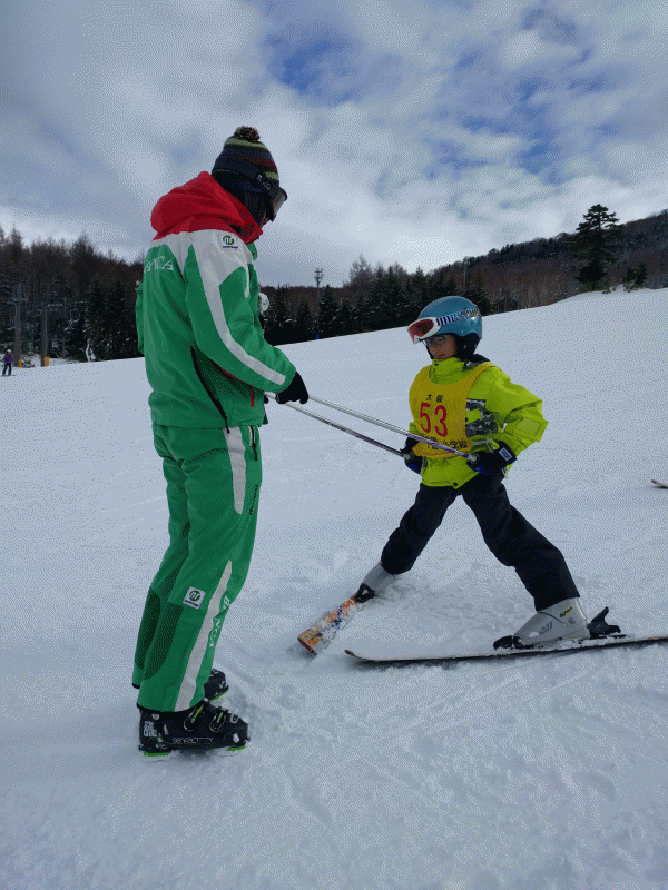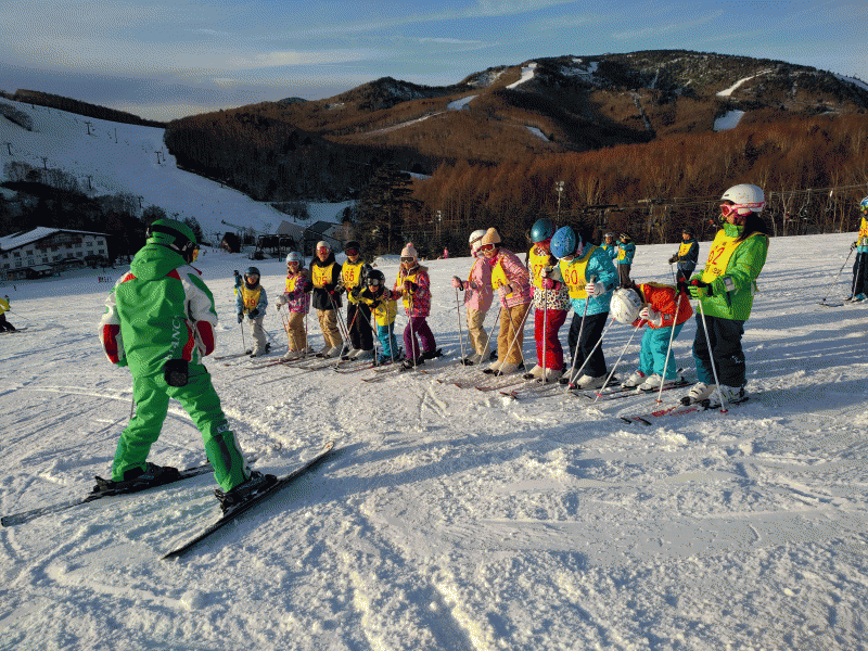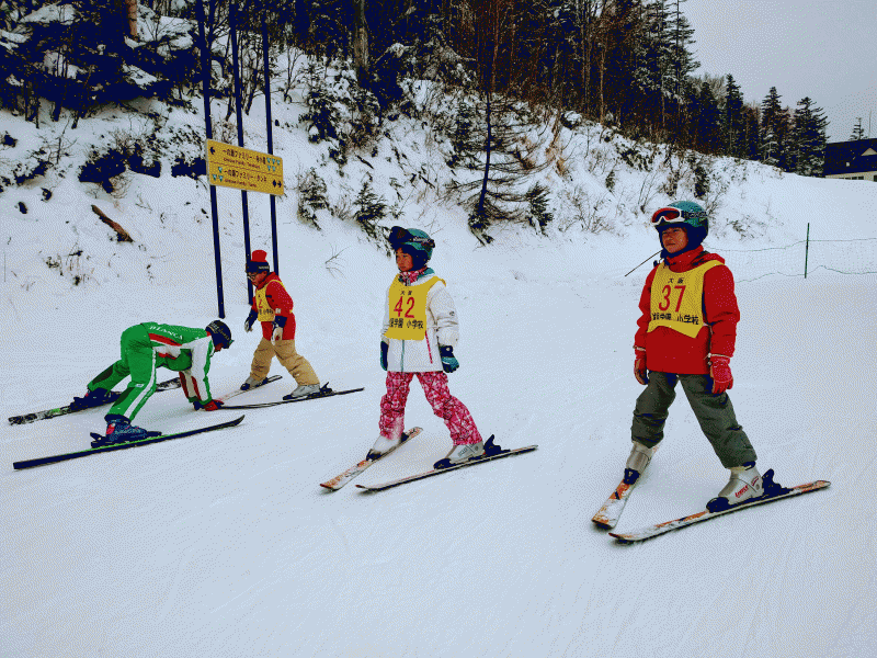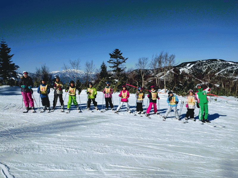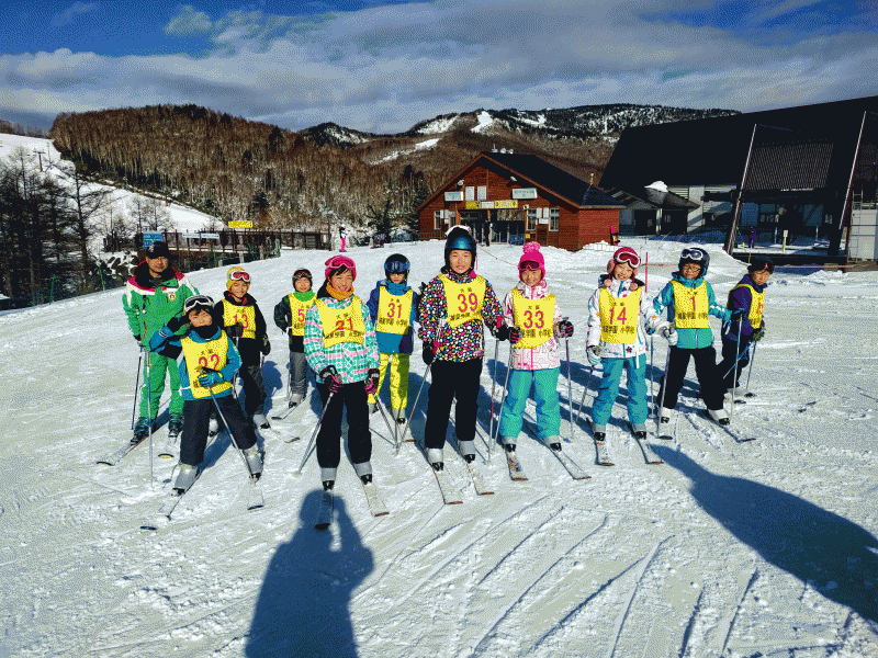 スキーの上達に向け、みんな熱心にコーチの指導についていきます。