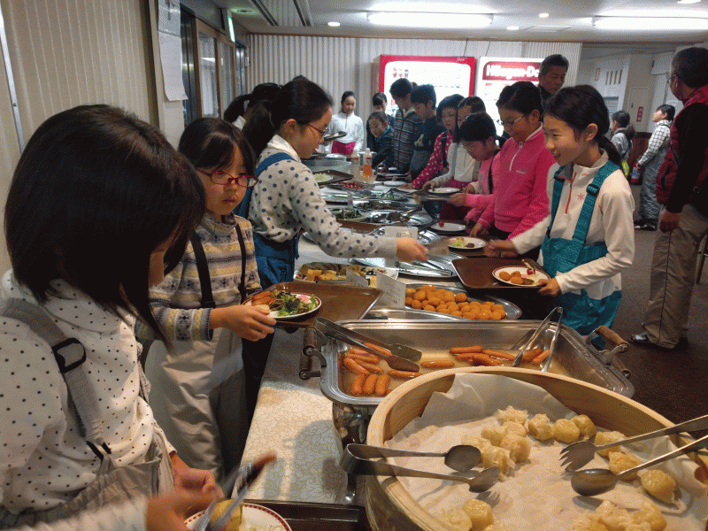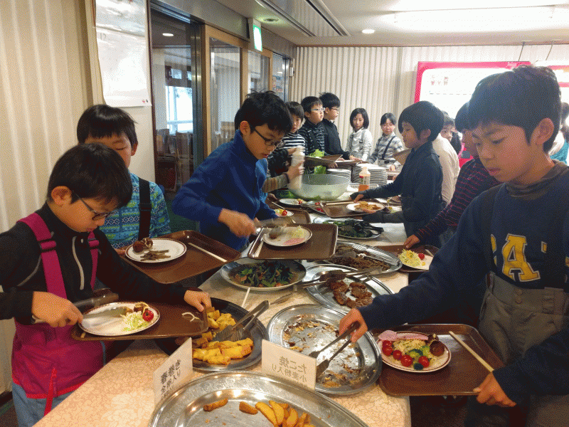夕食では、みんなそうとうお腹が空いていたのか、おひつのご飯をおかわりするテーブルがいくつもありました。たくさん食べて、眠って、明日にそなえます。