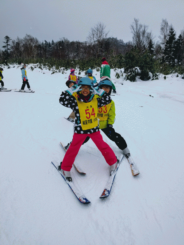 午後は雪が降る中の講習でした。全体の半分が終わり、スキーが初めてだった子も、だいぶ慣れてきたようです。
