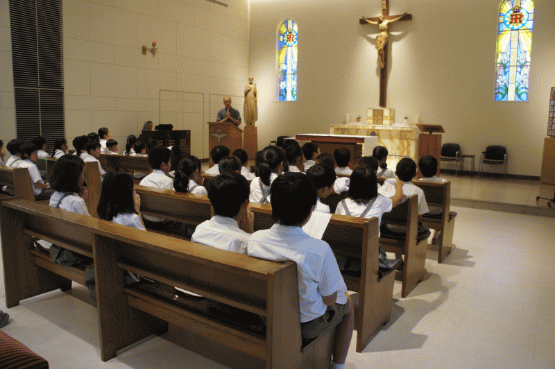 練成会の最後はミサです。今日の教えを心に留めて夏休みを過ごしましょう。