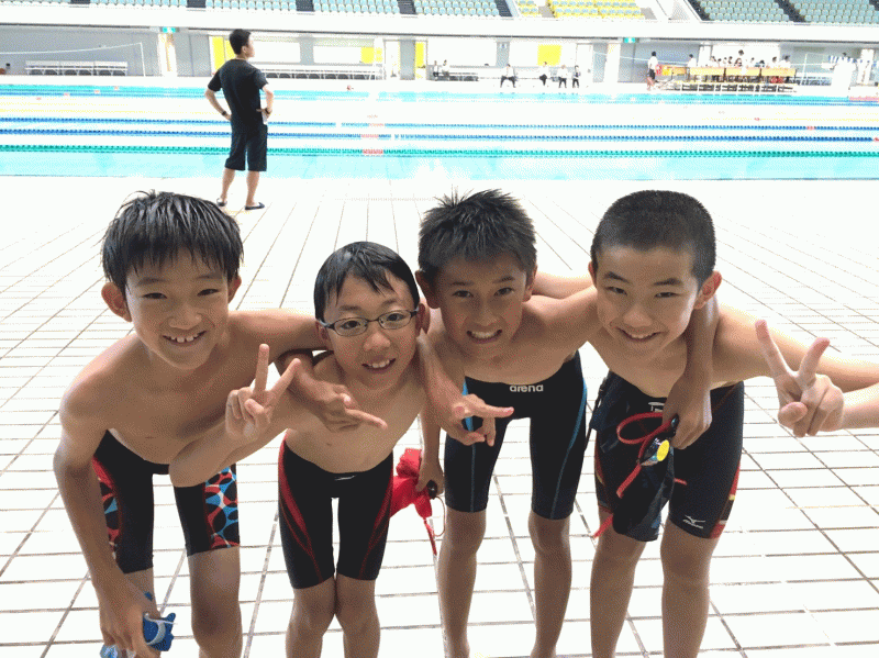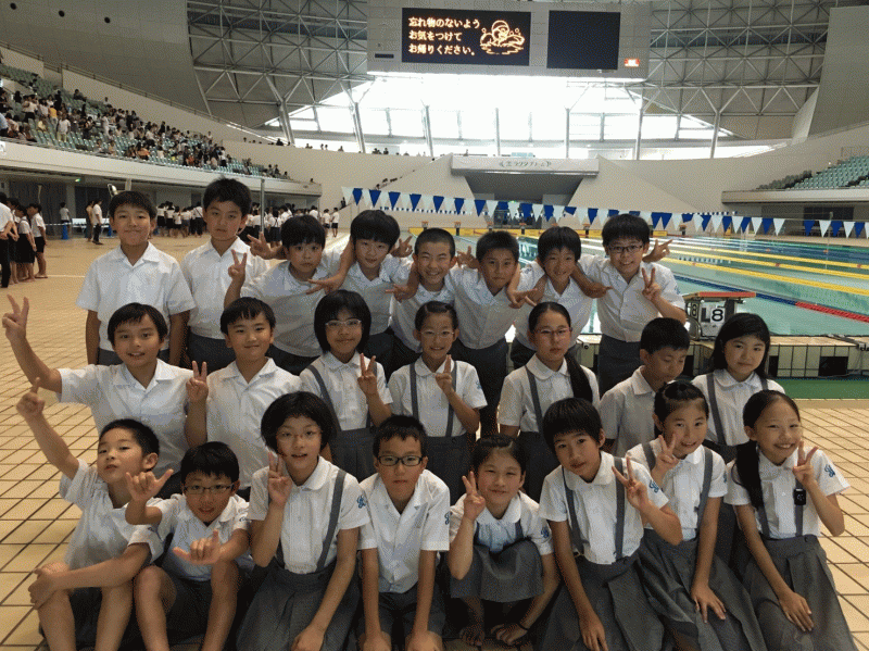 個人では6年生の池田君が自由形で3位、新井君が平泳ぎで8位と健闘しました。