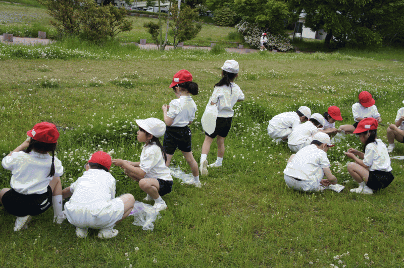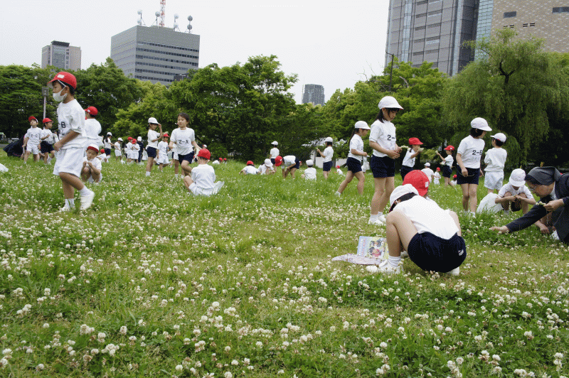 今日低学年の子どもたちは、「難波宮跡」に草花遊びに行きました。