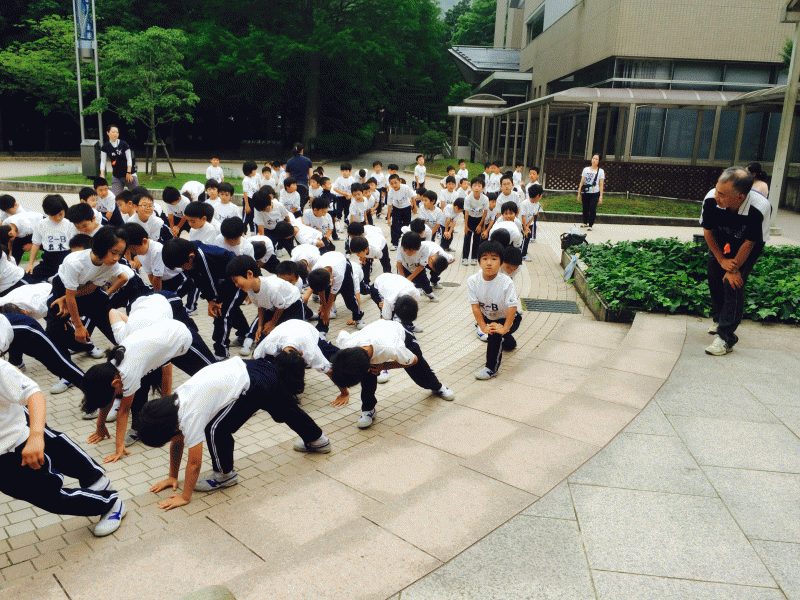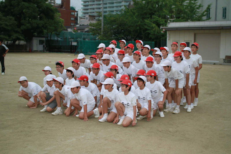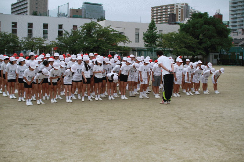 今日は初めて運動場で実際の隊形に並んで練習できました。