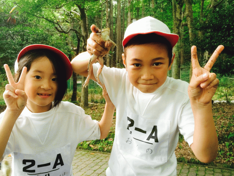 天気はなんとか持ち、楽しい楽しい体験ができました!カエルやバッタ、カニなどを捕まえ大興奮です!!