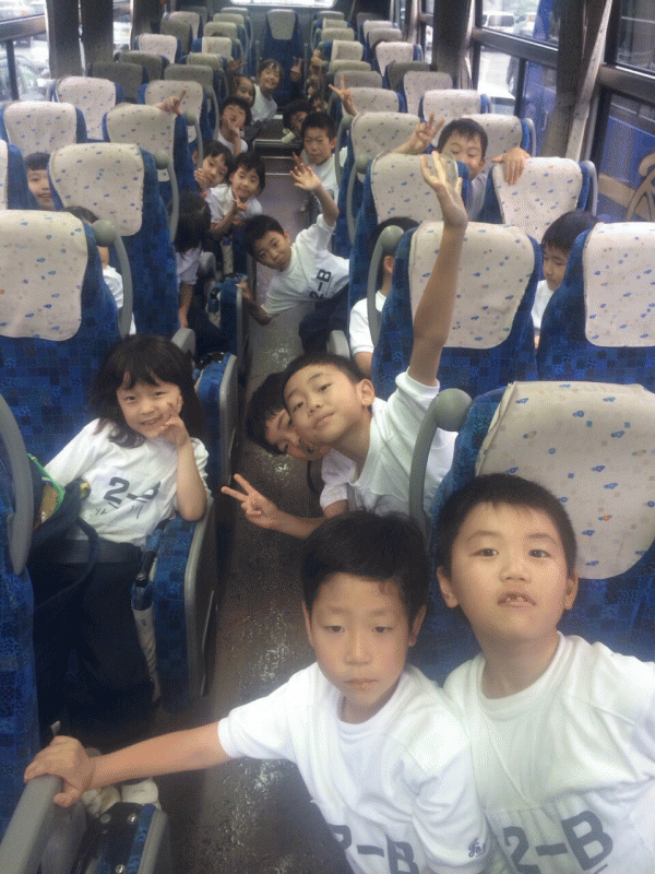 お楽しみのバスの時間!2日間の盛りだくさんの活動で疲れたと思いますが、どこか満足気な顔をしています!