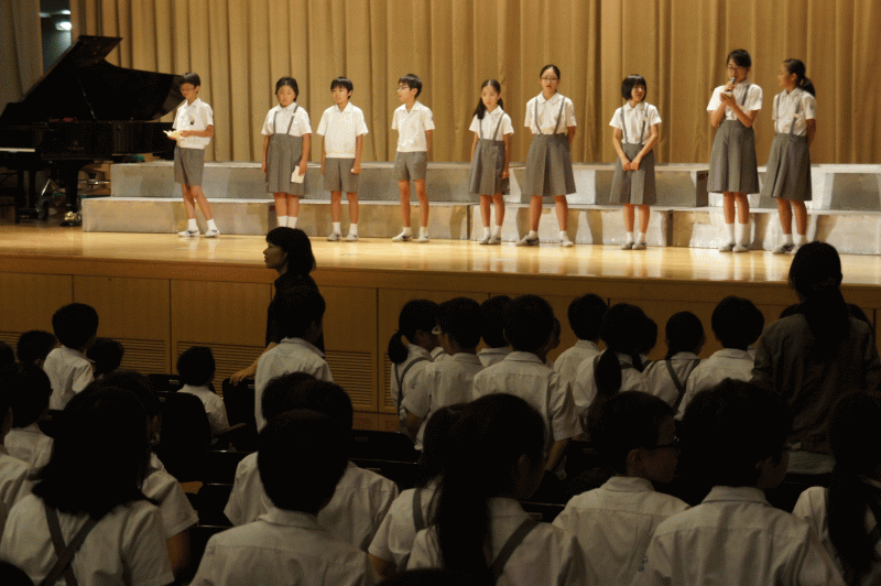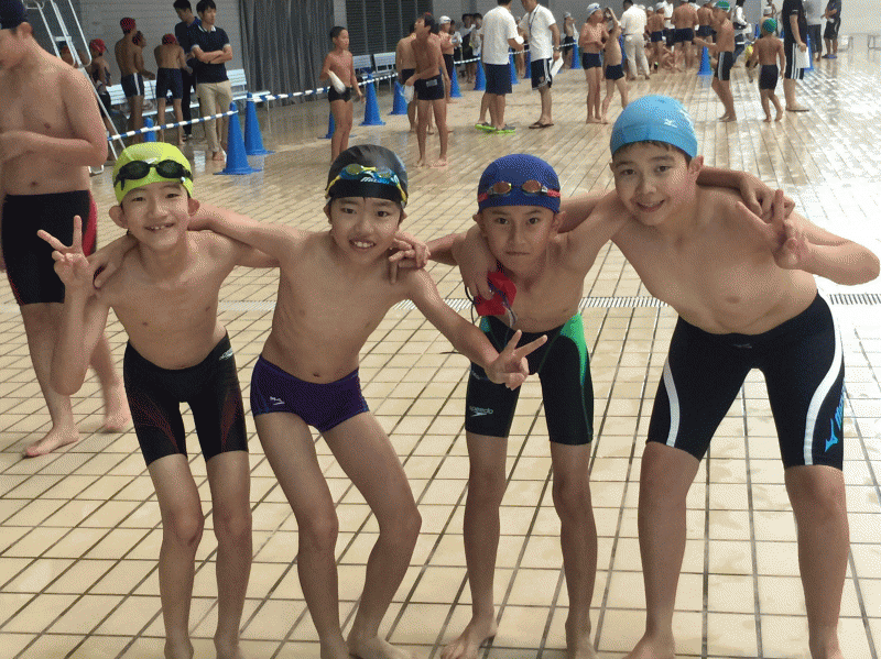今日は式の後に夏休み中に行われた水泳記録会の報告が行われました。