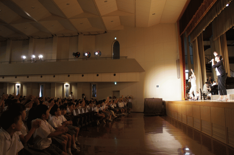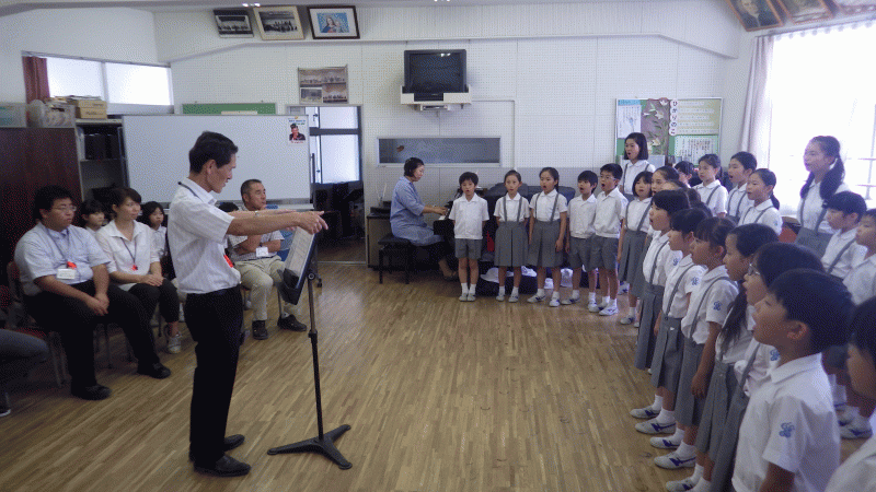 最後は児童全員で、いいお手本が前にいると、子どもたちの歌がどんどん上達します。