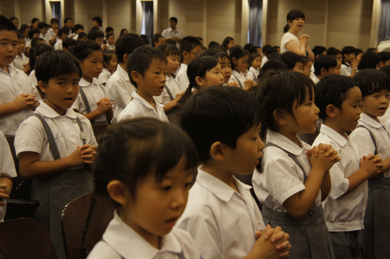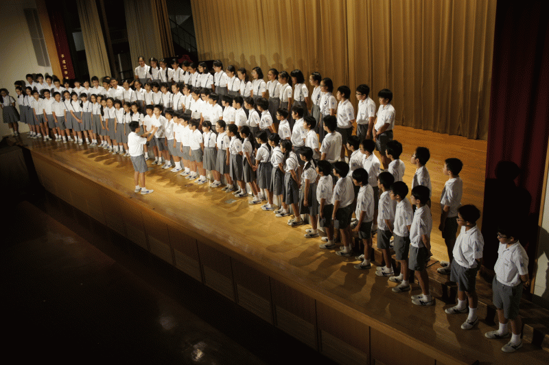 本校は1年生から6年生まで、みんなしっかり歌います。