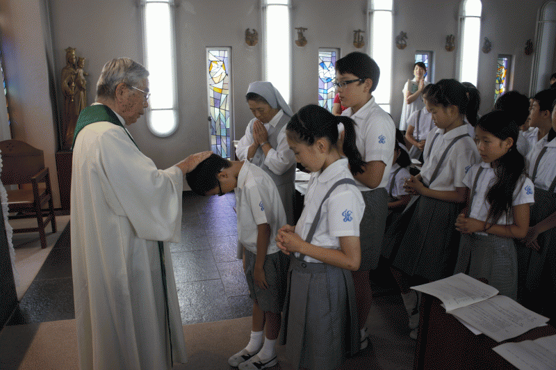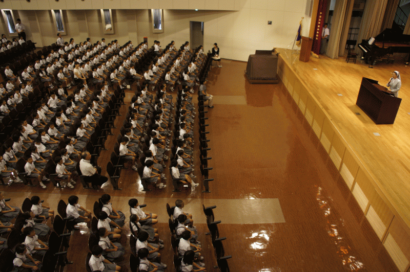 今年度の錬成会も学校で行われました。今年はドンボスコ生誕200周年ということもあり、ドンボスコと一緒に生活した子どもたちに焦点を当ててグループで分かち合いを行いました。
